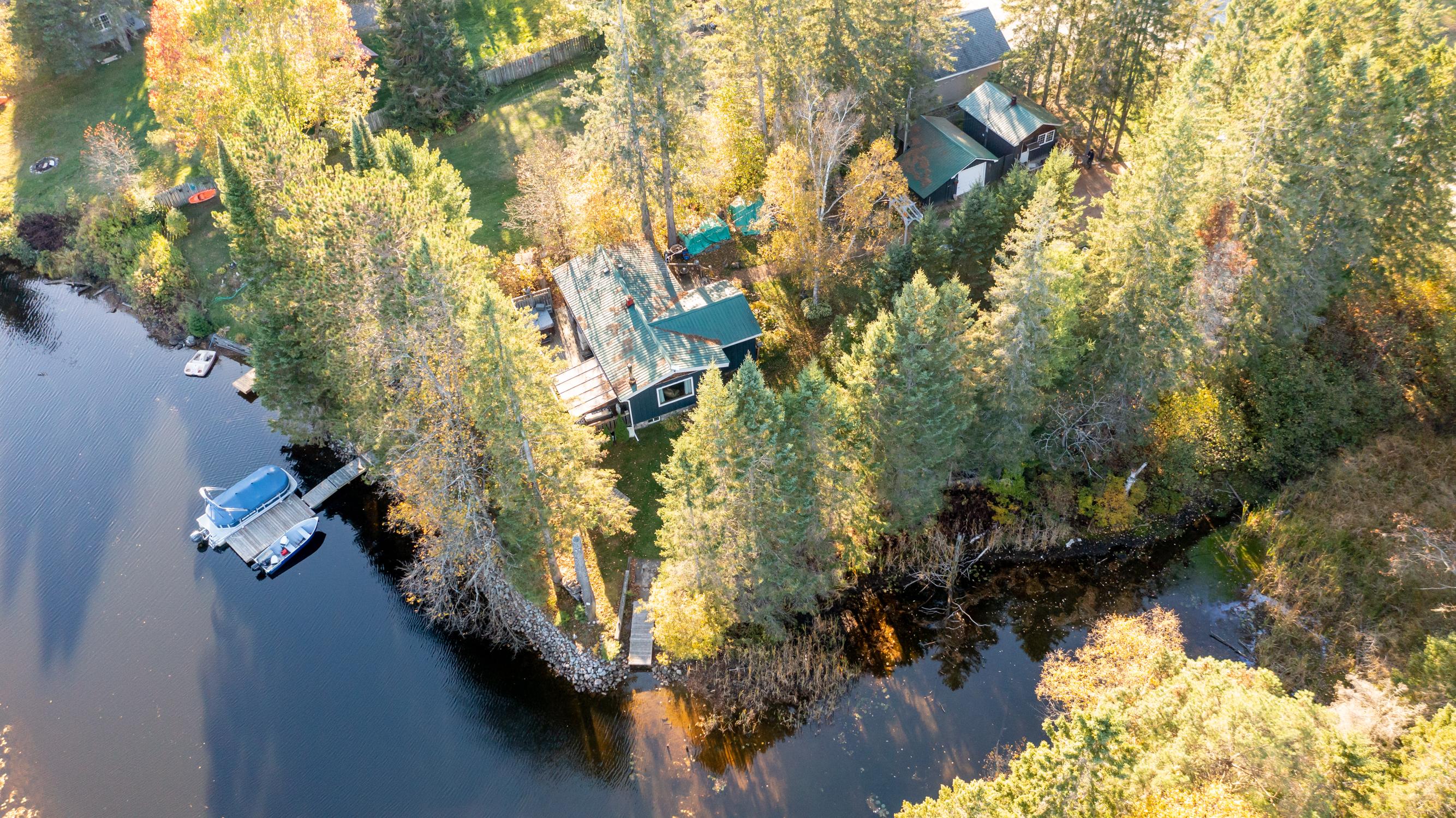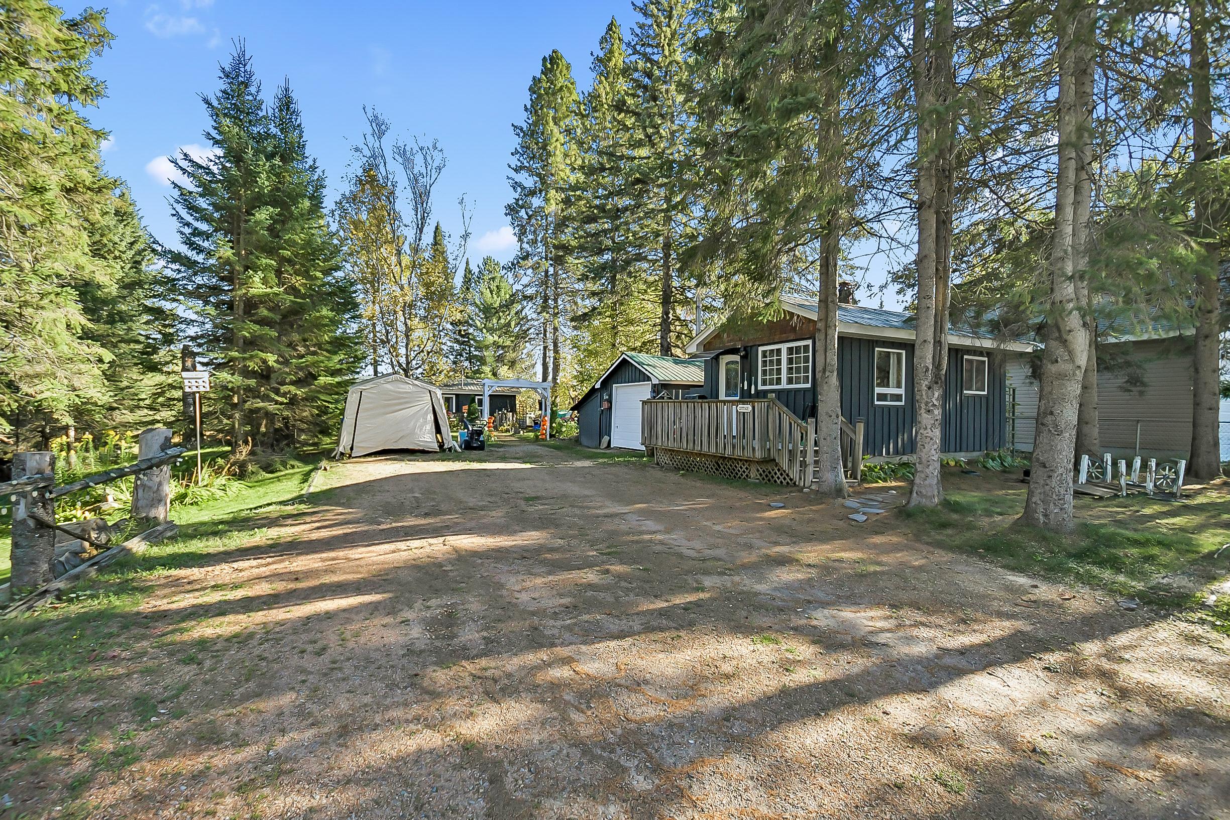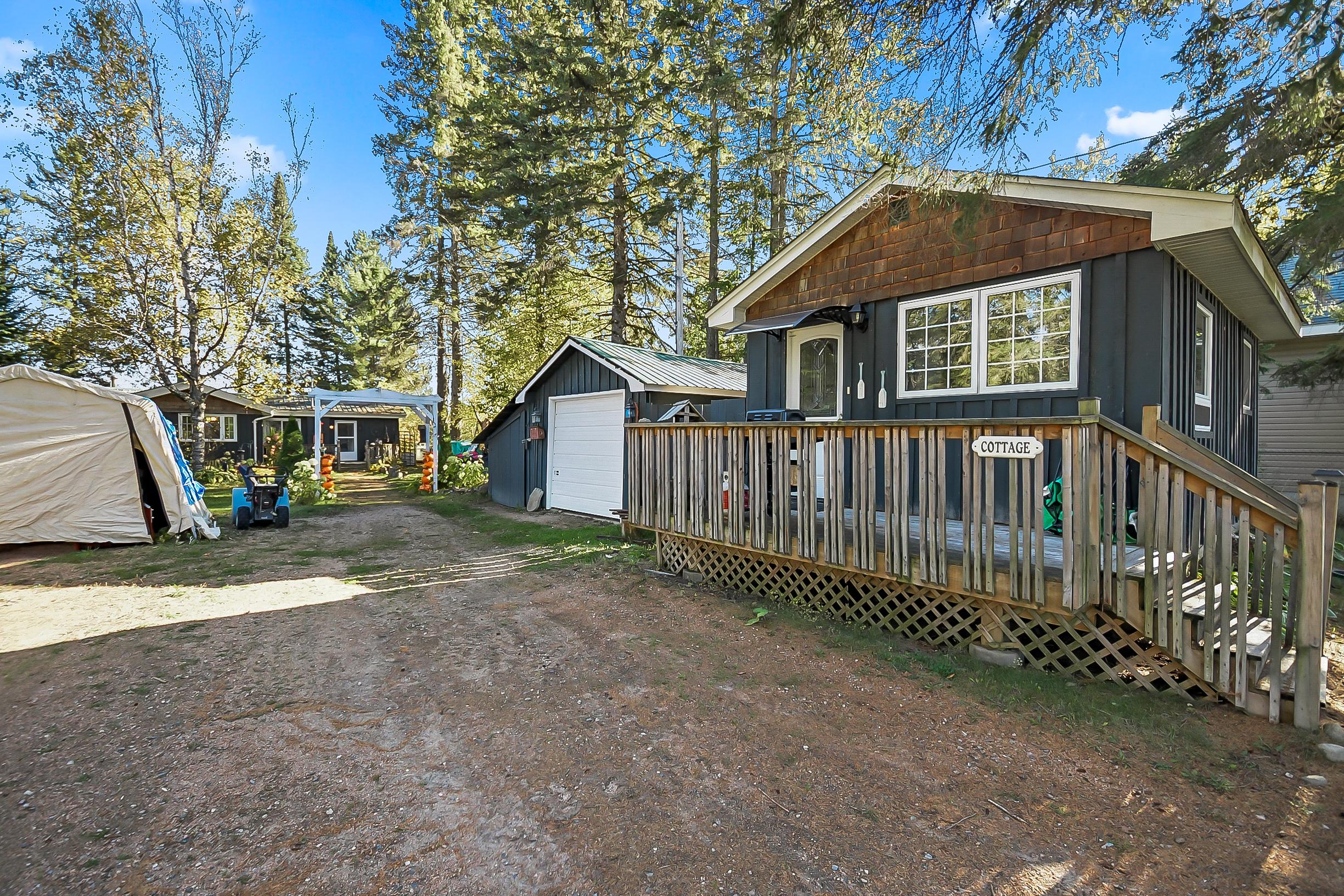 YEAR ROUND COTTAGE IN KEARNEY on the iconic Magnetawan River that connects you to a 3 lake chain with 7 miles of boating into Perry, Hassard and Beaver Lake. Hwy access with all paved roads, walk, drive or boat in to Town to restaurants, LCBO, snack bar, gas, community centre, beaches, skating rink and much more. There are things to do year round in Kearney and you are on the corridor to visit Algonquin Park! This 2 bedroom, 1 bathroom main cottage offers a detached garage, hot tub on lakeside deck with water toy shed with 2 docks. There is a second storage shed that can be converted in to a bunkie, plus a YEAR ROUND one bedroom, one bath cottage! There are no short term rental by-laws here, the small cottage can be rented out year round to pay your mortgage! It is on the AirBnb program now. Great location and good package for first time cottage buyers, investors or first time home owners. The main cottage is heated with a wood stove and baseboard heat with all the comforts of home including laundry, bell hi-speed internet and good cell service. Kearney is a popular winter haven for snowmobilers and for ATV enthusiasts and is known for the best fireworks in the District and for their annual dog sled races every February. This is a rare find ... do not miss out on this one folks it will not last long.