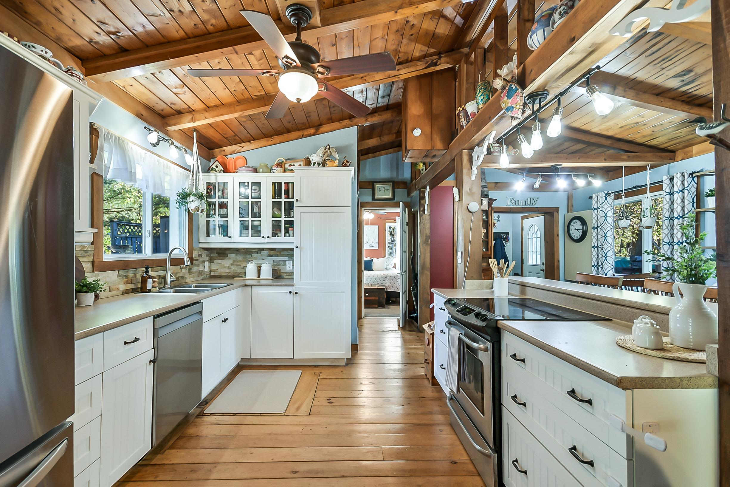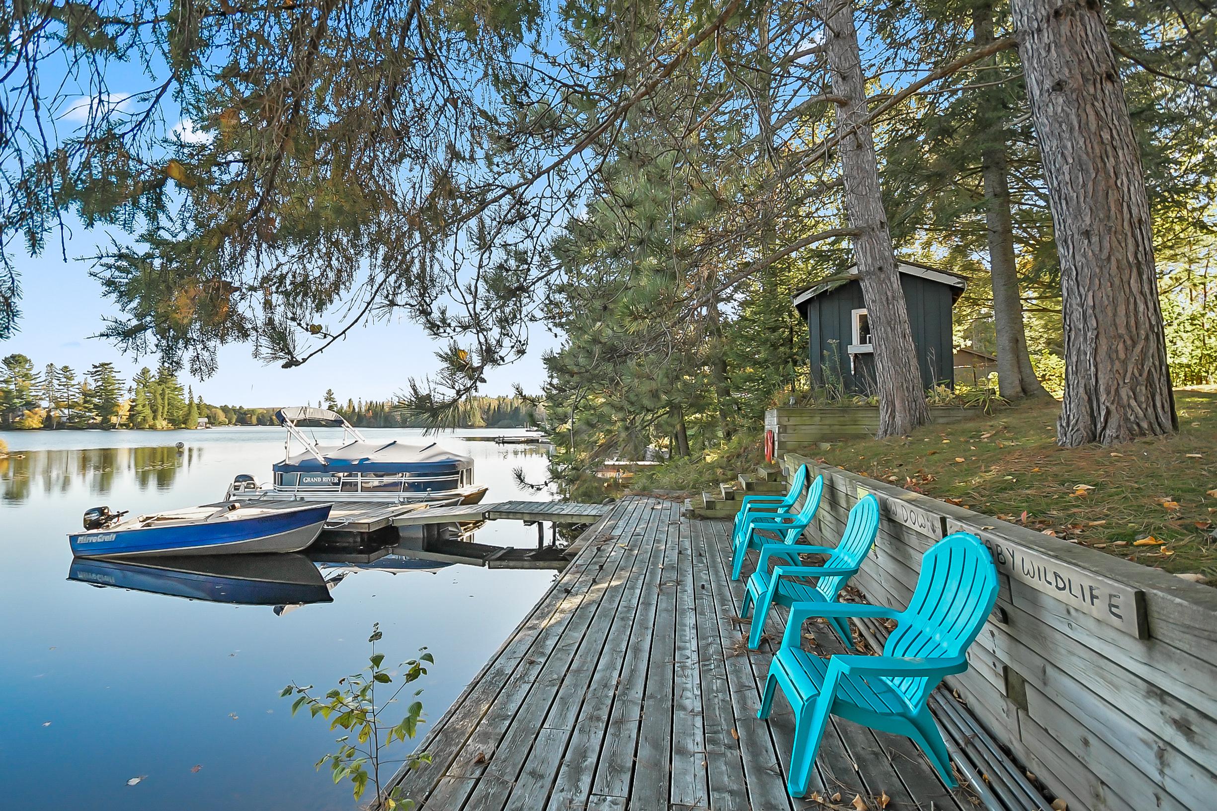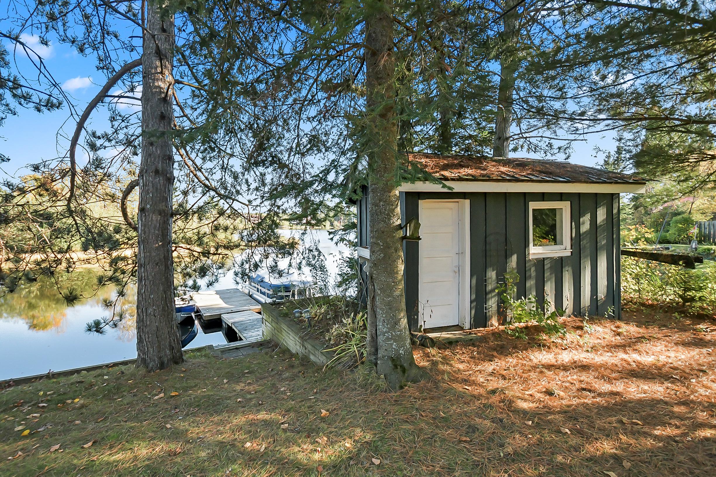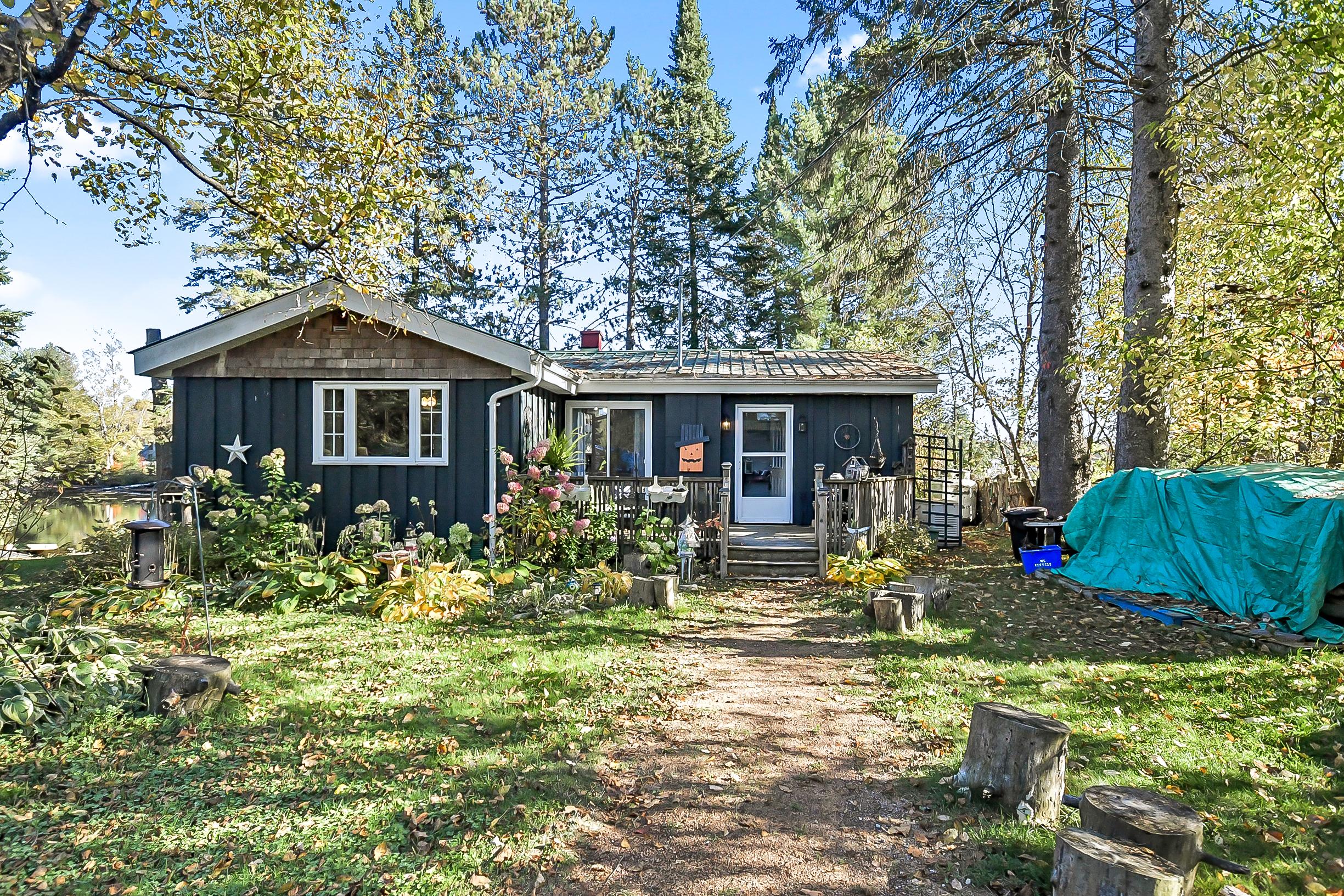 YEAR ROUND COTTAGE IN KEARNEY on the iconic Magnetawan River that connects you to a 3 lake chain with 7 miles of boating into Perry, Hassard and Beaver Lake. Hwy access with all paved roads, walk, drive or boat in to Town to restaurants, LCBO, snack bar, gas, community centre, beaches, skating rink and much more. There are things to do year round in Kearney and you are on the corridor to visit Algonquin Park! This 2 bedroom, 1 bathroom main cottage offers a detached garage, hot tub on lakeside deck with water toy shed with 2 docks. There is a second storage shed that can be converted in to a bunkie, plus a YEAR ROUND one bedroom, one bath cottage! There are no short term rental by-laws here, the small cottage can be rented out year round to pay your mortgage! It is on the AirBnb program now. Great location and good package for first time cottage buyers, investors or first time home owners. The main cottage is heated with a wood stove and baseboard heat with all the comforts of home including laundry, bell hi-speed internet and good cell service. Kearney is a popular winter haven for snowmobilers and for ATV enthusiasts and is known for the best fireworks in the District and for their annual dog sled races every February. This is a rare find ... do not miss out on this one folks it will not last long.